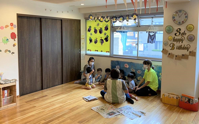 取材中も自ら保育に入り、園児と触れ合う園長の姿や、小規模保育ならではのゆったりした保育が印象的でした。また事務方、調理士がいることで業務の役割分担がはっきりできていて、保育士は保育に集中できる現場と感じました。開園4年目ということもあり、施設が新しく清潔なところも注目ポイントだと思います。