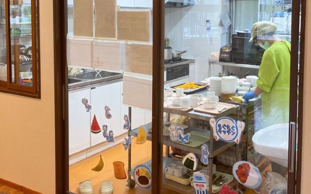 えみのきの「ていねいな保育」は、「食」にも表れています。美味しい手づくりの食事には、調理スタッフの愛情がたっぷり込められています。廊下に面した給食室のドアは全面ガラス張りなので、「今日のご飯は何?」と、子ども達がわくわくしながらいつも給食室をのぞき込んでいるんですよ。調理スタッフも大切な保育者の一人です。そして乳幼児の健康を支えるために欠かせない、看護師も常勤職員として勤務しています。小さなケガや発熱、下痢・嘔吐など、何かあった時に、医療のプロフェッショナルがいてくれるのは本当に心強い。また事務のスタッフも、チームの大切な一員です。職員の勤怠管理や助成金の請求など、保育園にかかわるさまざまな業務をこなしてくれています。どんな状況にも適切な判断・行動ができる。それが、えみのきの「チーム保育」の強みです。