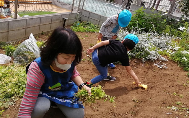 園庭や菜園、乳児も安心して遊べる、もう一つのお庭「にこにこ広場」や遊戯室など、広く明るい園舎は「写真で見るより広くて、とても素敵ですね!」と、見学に来た方によく言っていただいています。2022年4月には、幼児室・乳児室も拡張。より広々とした保育室で、小規模ならではのゆったりとした保育が実現します。