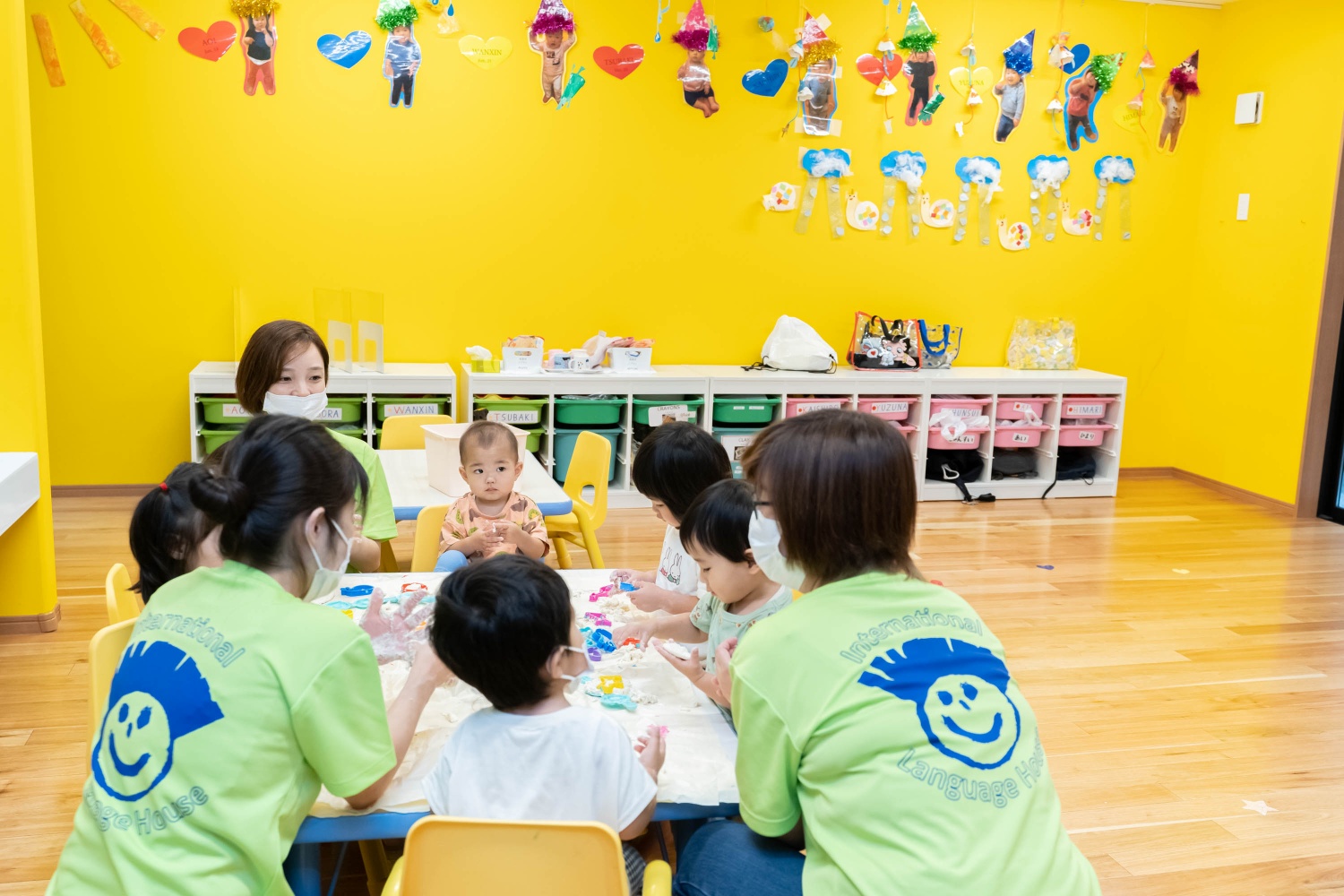 取材当日はあいにくの雨だったのですが、園内は晴れているかのように明るい光に包まれていました。天井も高いので、のびのびダンスしているクラスもあれば、隣の保育室では年長児さんが大きな作品の製作に集中。1階では1・2歳児の子どもたちがゆったりおしゃべりしながら小麦粉粘土を楽しんでいます。バイリンガルな環境のもと、自然体の笑顔で過ごす子どもたち。そして日本人も外国人も先生がとにかく元気いっぱい。心が晴れやかになるそんな保育園でした。