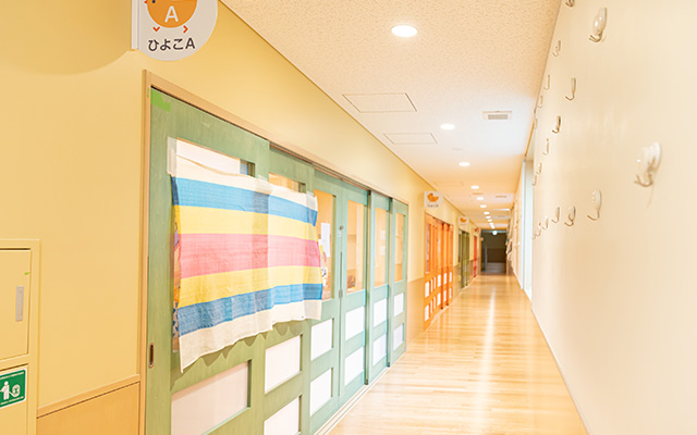 園舎は、1・2歳をお預かりする保育棟と、3歳児からの幼稚園棟に分かれています。1~2歳の保育棟と3~5歳の幼稚園棟は、一体型の施設で繋がっておりますが、入り口がそれぞれあります。