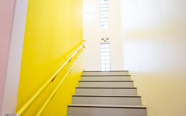 オレンジや赤、青、緑……園舎内は実にカラフル。「このクラスは何色」などのルールはなく、家具の色も配置もバラバラになっています。みんな違っていいんだよ、というメッセージは、多様な個性や価値観を受容し認め合う心を養うことにつながります。