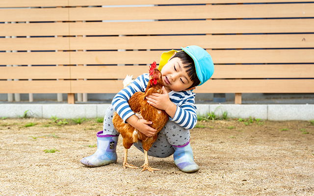 にわとりも友達!特別な遊具がなくても遊びが生まれる