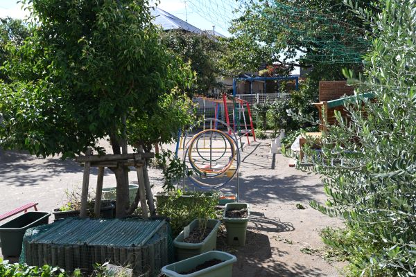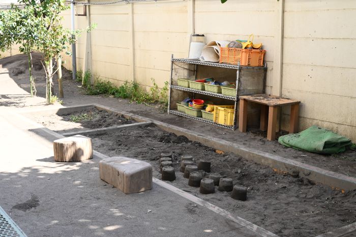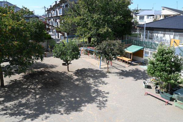 園庭も、毎年少しずつ環境を整えて、好きな遊びの選択肢が増えるように工夫しています。園庭の木も、遊びにつながる保育環境の一つと考えています。ムクロジの木は、実に水を加えると泡立ち、シャボン遊びができるのでお勧めの木です。