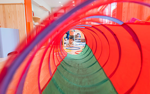 取材にお邪魔すると、ちょうど英語の活動中。担当の先生が英語の歌を歌っていました。0歳の赤ちゃんも目をキラキラさせて体を揺らして楽しそう。子どもも大人も、ゆったりとくつろいで、まるで家にいるかのようなあたたかい保育室です。「いまは0・1・2歳児が中心ですが、学童も含めて0歳から12歳まで見たい、という夢はありますね」と語る石村代表。主任保育士の内山先生をはじめ、職員への信頼感が保育園の穏やかな雰囲気になっていました。保育現場でモンテッソーリを実践したい方にはおすすめの園です。